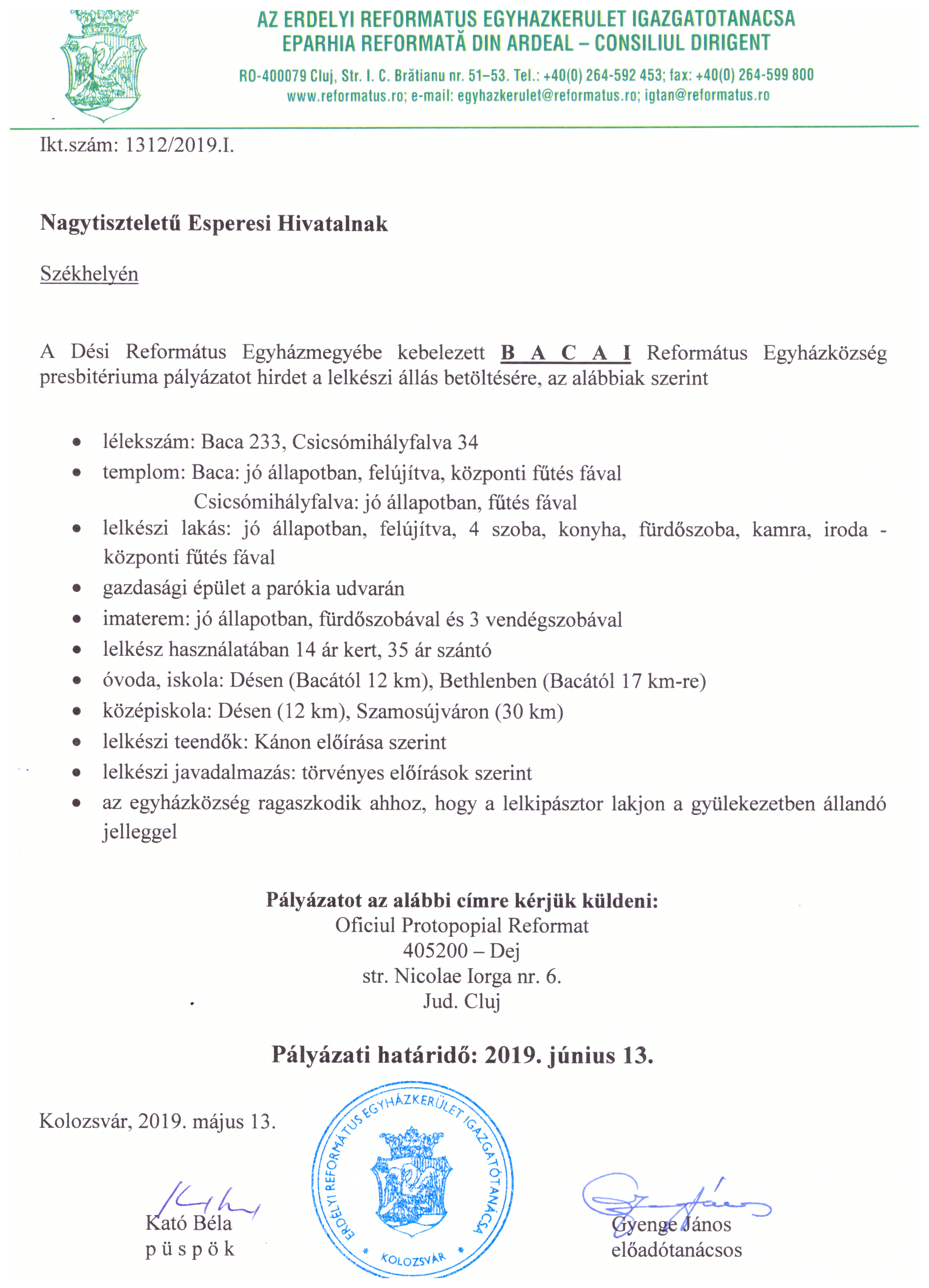 Pályázat - BACA - Lelkészi állás